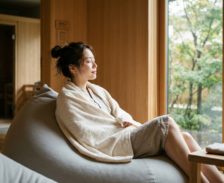 室内休憩(内気浴)では、外気浴のような「風による冷却」が期待できません。そのため、水風呂の段階で身体の熱をどれだけ正確にコントロールできたかが、その後のリラックスの深さを決定づけます。