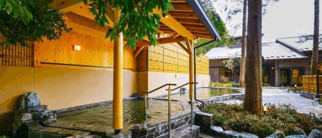地下1,620mから湧き出る天然温泉を使用しており、一部の露天風呂では、源泉かけ流しが楽しめます。施設全体がヒノキの林に囲まれており、露天風呂では木漏れ日と自然の風を感じながら、まるで森林浴をしているかのような非日常感を味わえます。