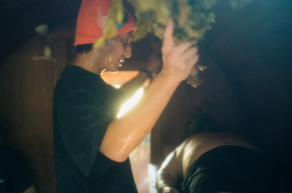 まず、ウィスキングとは、施術者が植物の枝葉(ヴィヒタ)を使って身体を叩いたり、蒸気を操ったりするサウナ内でのリラクゼーション・トリートメントのことです。