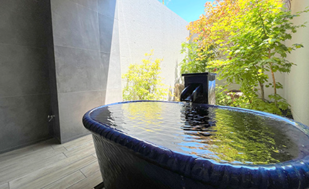 - 個室サウナ:予約制。信楽焼の陶器風呂(源泉かけ流し)とシャワーブースを併設した贅沢なプライベート空間。