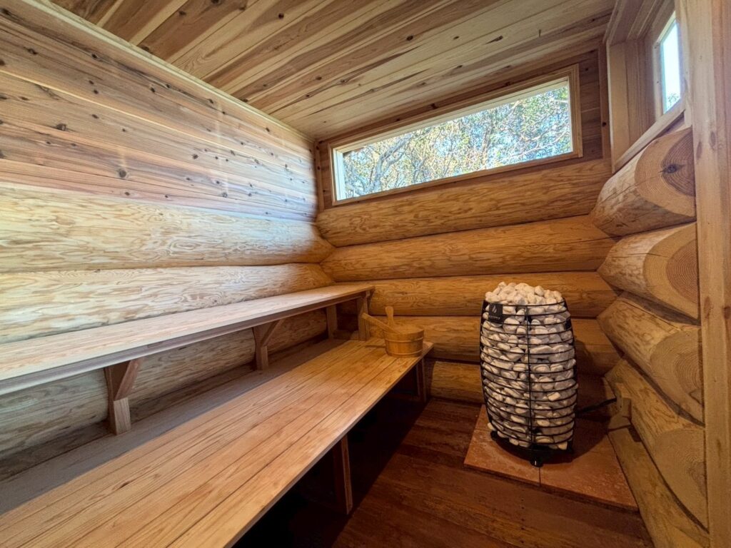 私たちの施設は6〜7人が余裕で入れる広めのログハウスサウナです。正直なところ、80℃設定だと立ち上がりに少し時間がかかる印象はあります。