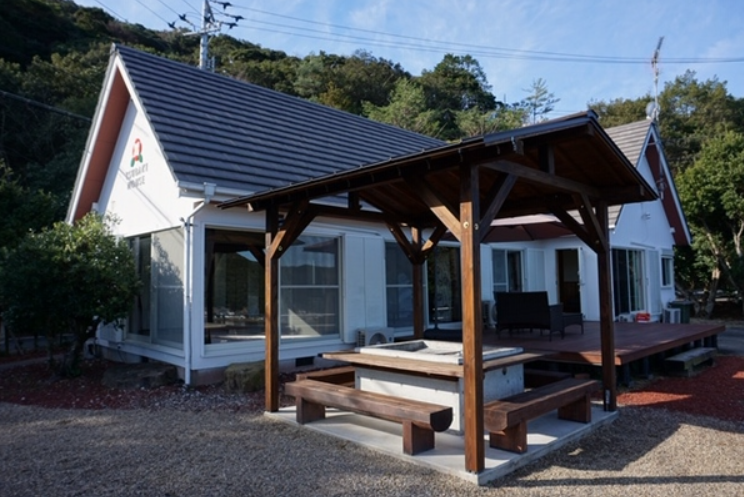 徳島県阿南市、リアス式海岸の美しい景観を望む椿町。この静かな高台に、1日1組限定のプライベートヴィラ「椿ハウス」はあります。